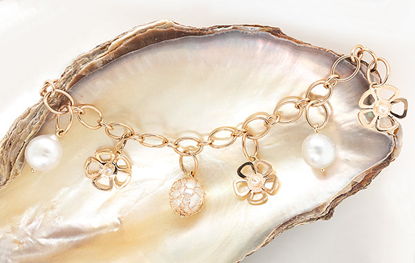Geraldton Wax Knitted Broome Pearl Charm Bracelet