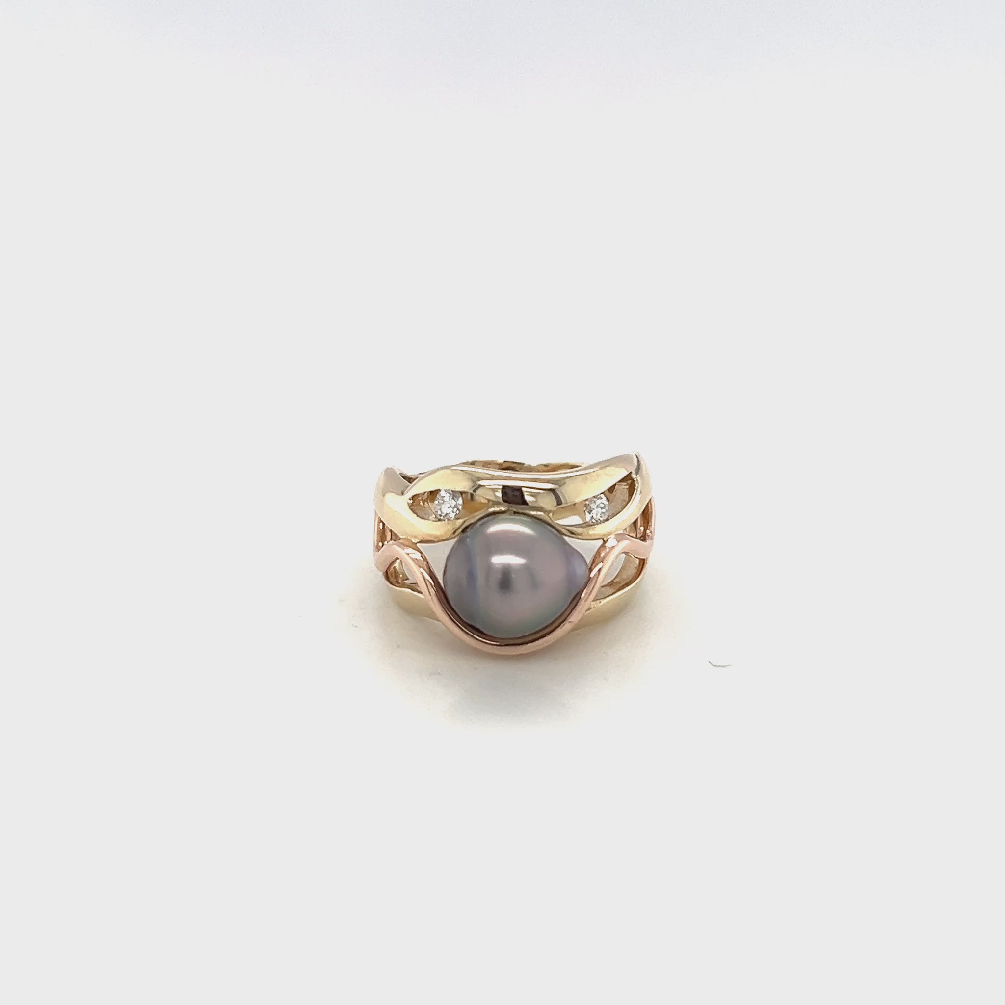 9ct yellow gold, 5.77grams. 9ct rose gold, 1.2grams. Size N.